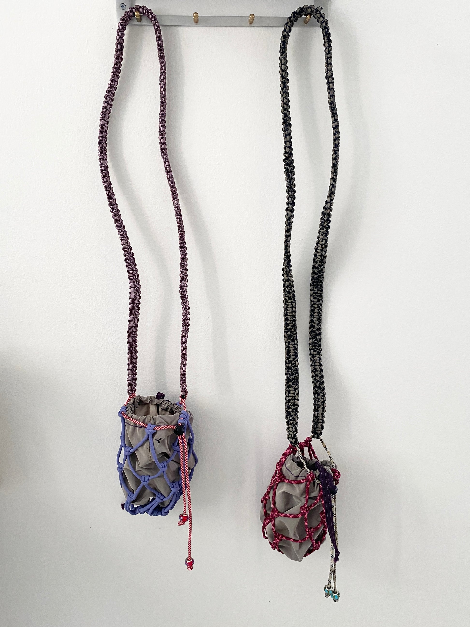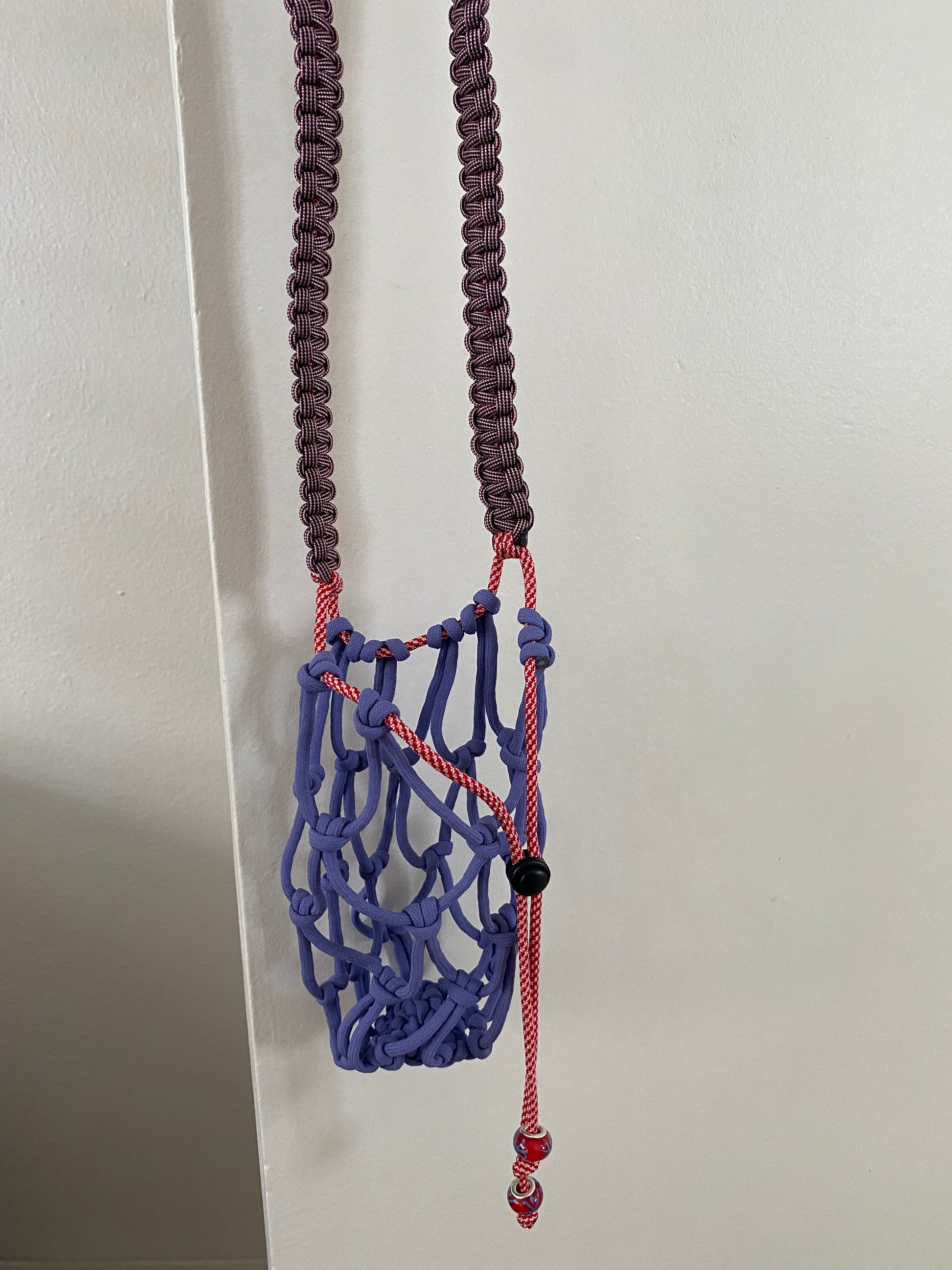 Paracord, plastic toggle, glass beads, deadstock polyester