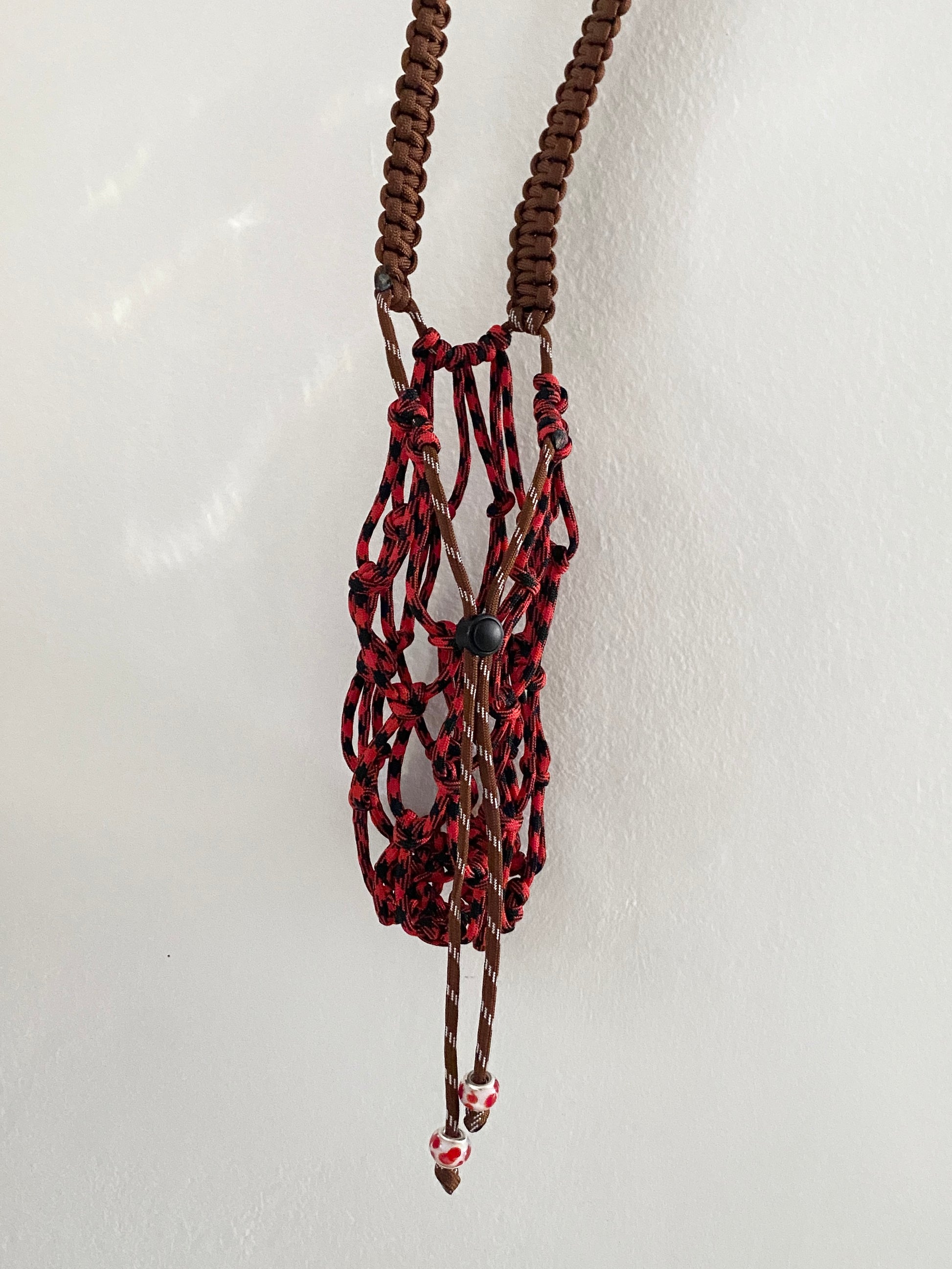 Paracord, plastic toggle, glass beads, deadstock polyester