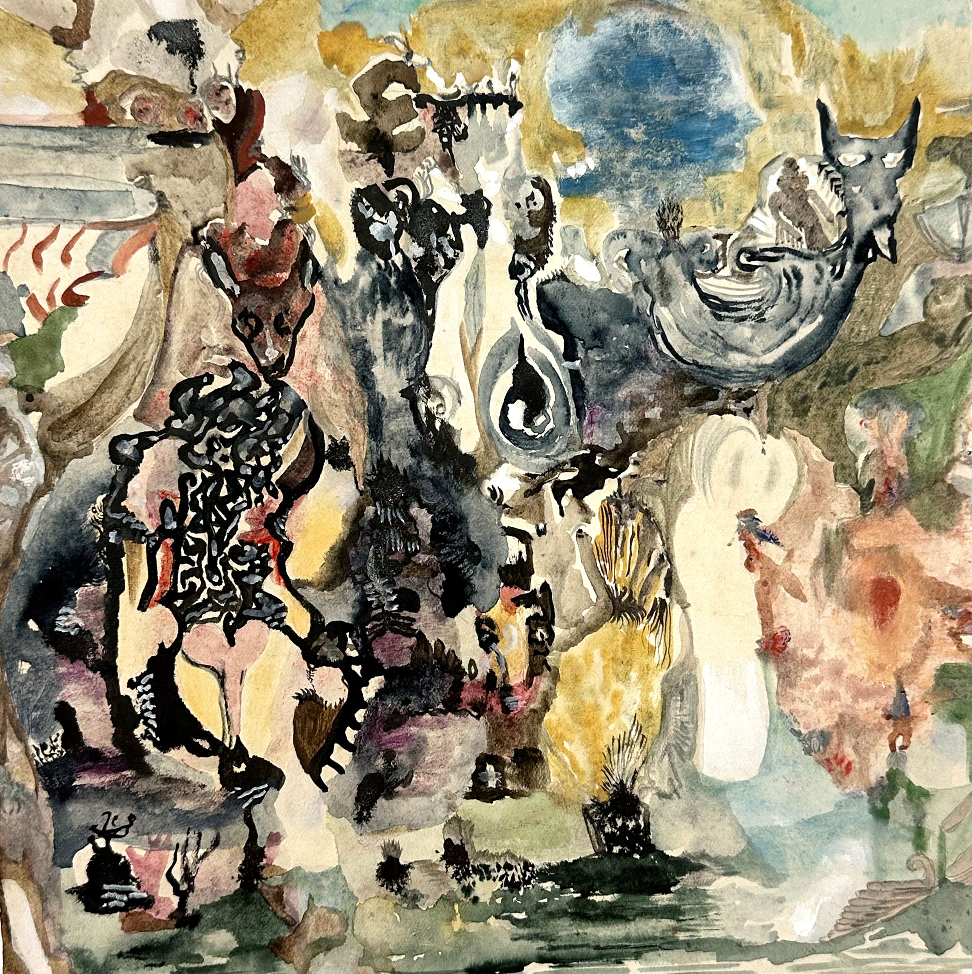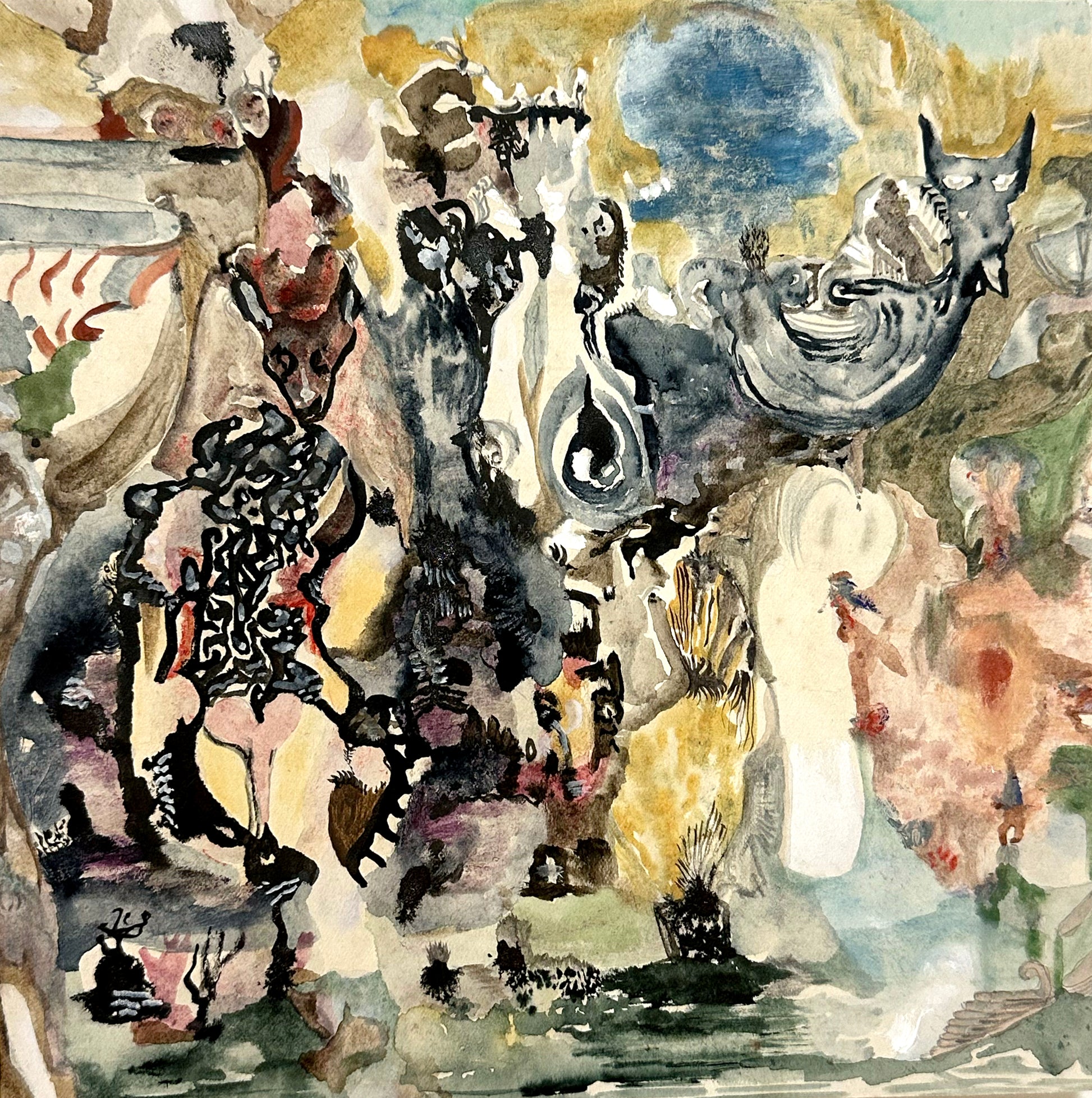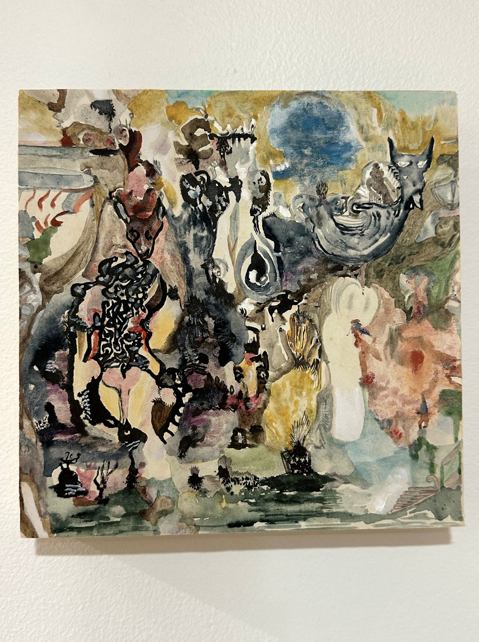 Material: Mixed media (graphite, ink, and watercolour/gouache) on paper on board