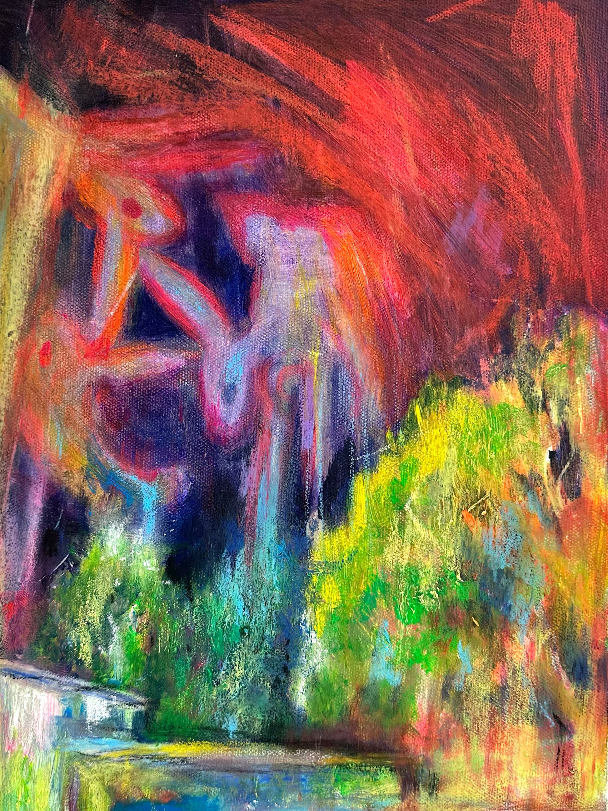 This painting show is a series of psychic scenes built from swamps, outskirts, and the in-between.