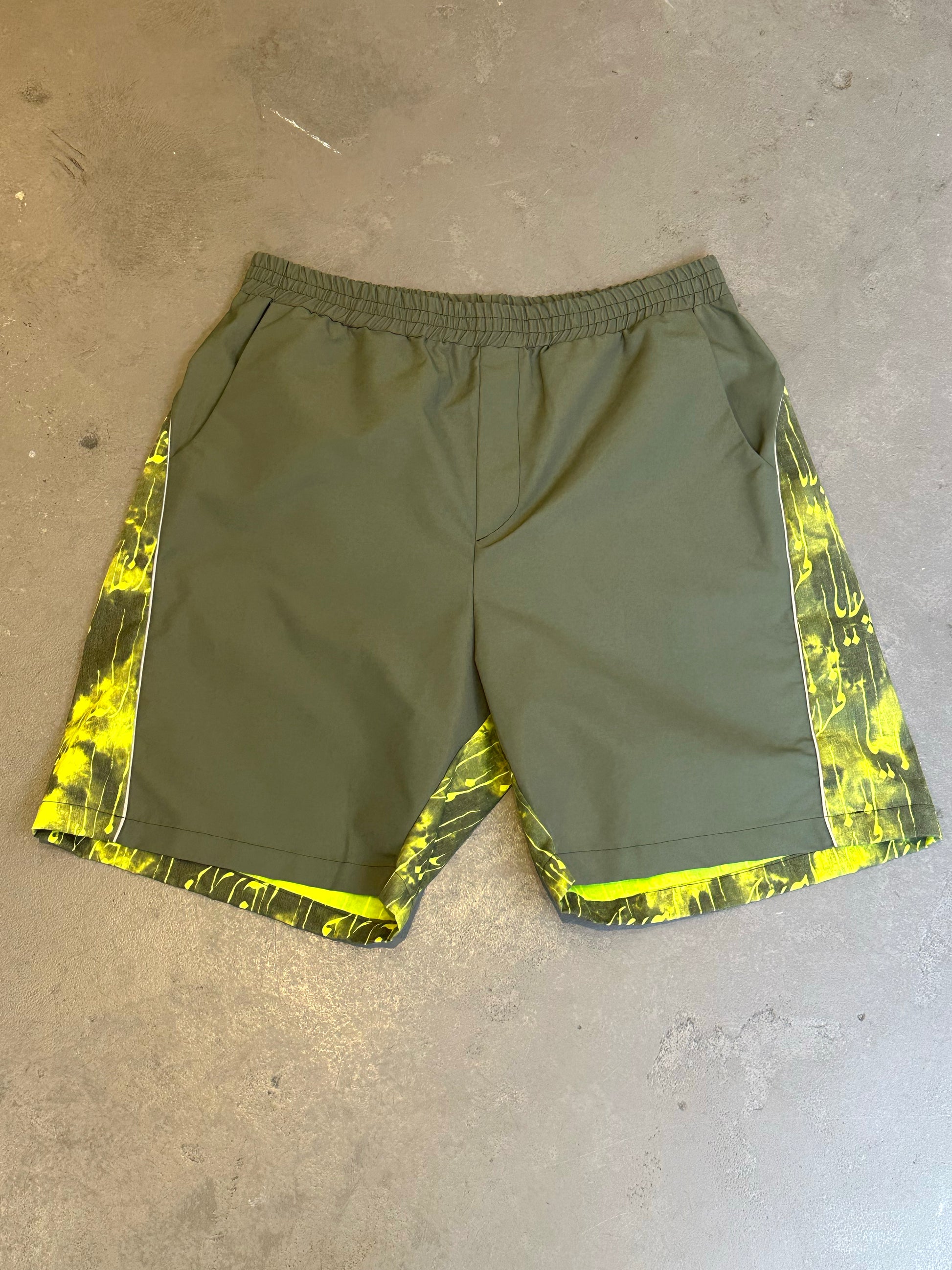 - Lightweight khaki cotton and recycled material shorts with reflective piping detail